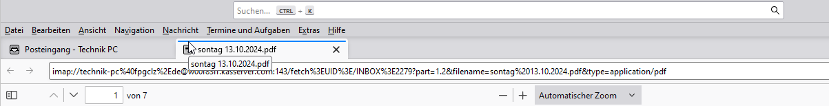 1. Thunderbird - Mail, z.B. für Ablaufpläne oder sonstige Infos/Unterlagen, die an die ”technik-pc“-Email-Adresse geschickt wurden.