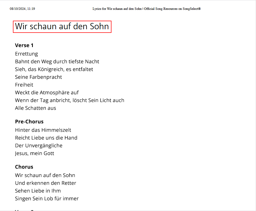 Der automatisch generierte Dateiname muss bei der Predigt abgeändert werden: